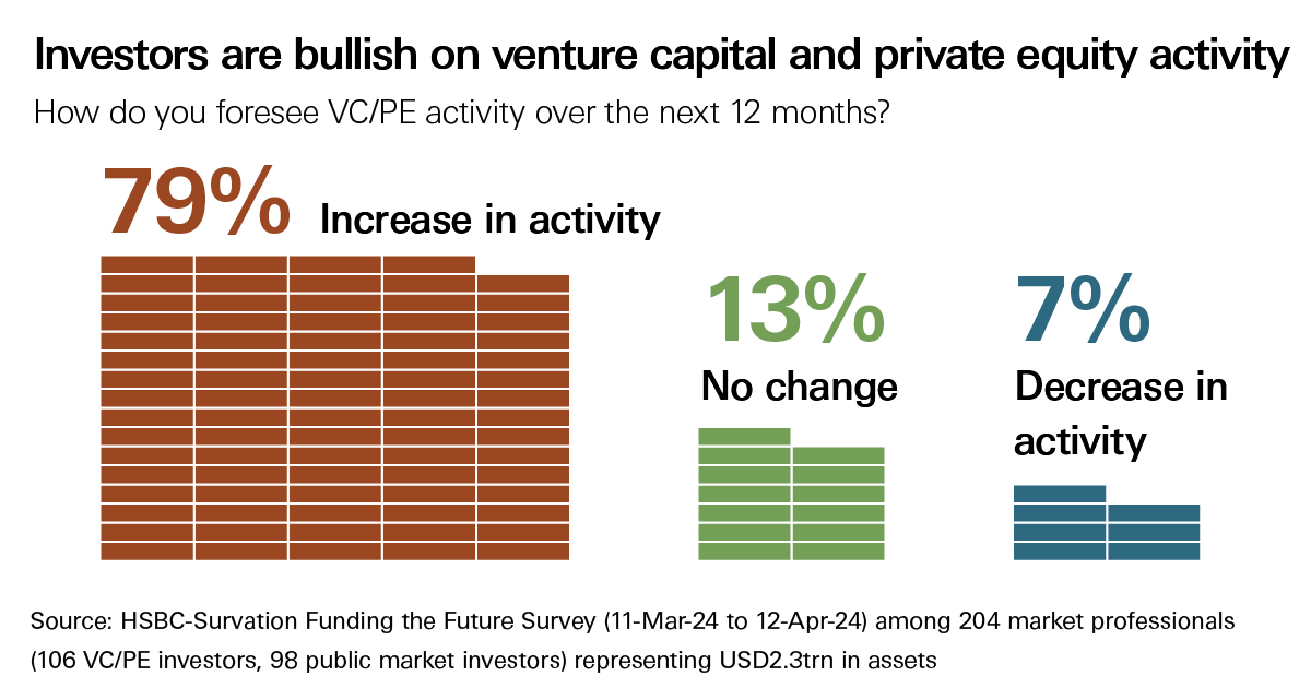 Venture capital (VC) is back in business, according to HSBC’s inaugural Funding the Future Survey. Nearly 80% of the private investors we surveyed expect a pickup in VC activity over the next 12 months.