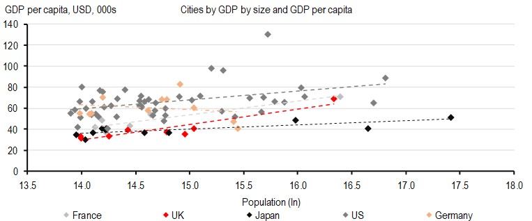 But in the UK or elsewhere across the developed world where urban growth is so heavily concentrated in one area, finding solutions may be easier. More remote work and more prevalent spread of internet connectivity may make it easier to bridge these gaps over the medium term. But, still, lots more spending is needed to join up these smaller cities and make them highly functional places for millions of people to live, work and play.