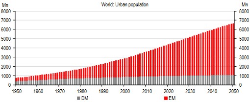 This matters because each year the world is leaving huge amounts of growth on the sidelines because of badly-designed or badly-connected urban areas. The World Bank estimates that the world needs to spend at least USD4.5trn per year on urban infrastructure to prepare us for the future. But finding this money isn’t so easy, and without it we could see the world’s cities not live up to their potential. That spending isn’t here at the moment and, unless something changes, we could see the challenges of urbanisation outweigh the positives, weighing on the growth potential in the fastest-growing parts of the global economy.