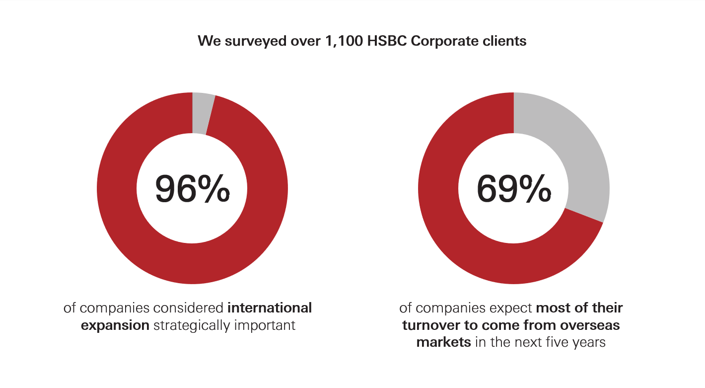Changing trade patterns will lead to altered supply chains and a need for new counterparties as companies not only amend their sourcing locations and product mix but also expand into newer markets. The good news is that corporates are not giving up on globalisation – in our HSBC survey¹ of over 1,100 customers, 96% still consider international expansion important, to facilitate growth, economies of scale, and risk diversification. Managing these supply chain shifts will be increasingly important.