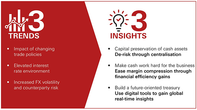 It is useful for a treasurer to ask themself: if the board asked me to give them a view on the cash position for a global company as of today or even yesterday, could I do it? And do I only have optimal but not excess cash in markets that are becoming more volatile due to policy changes?