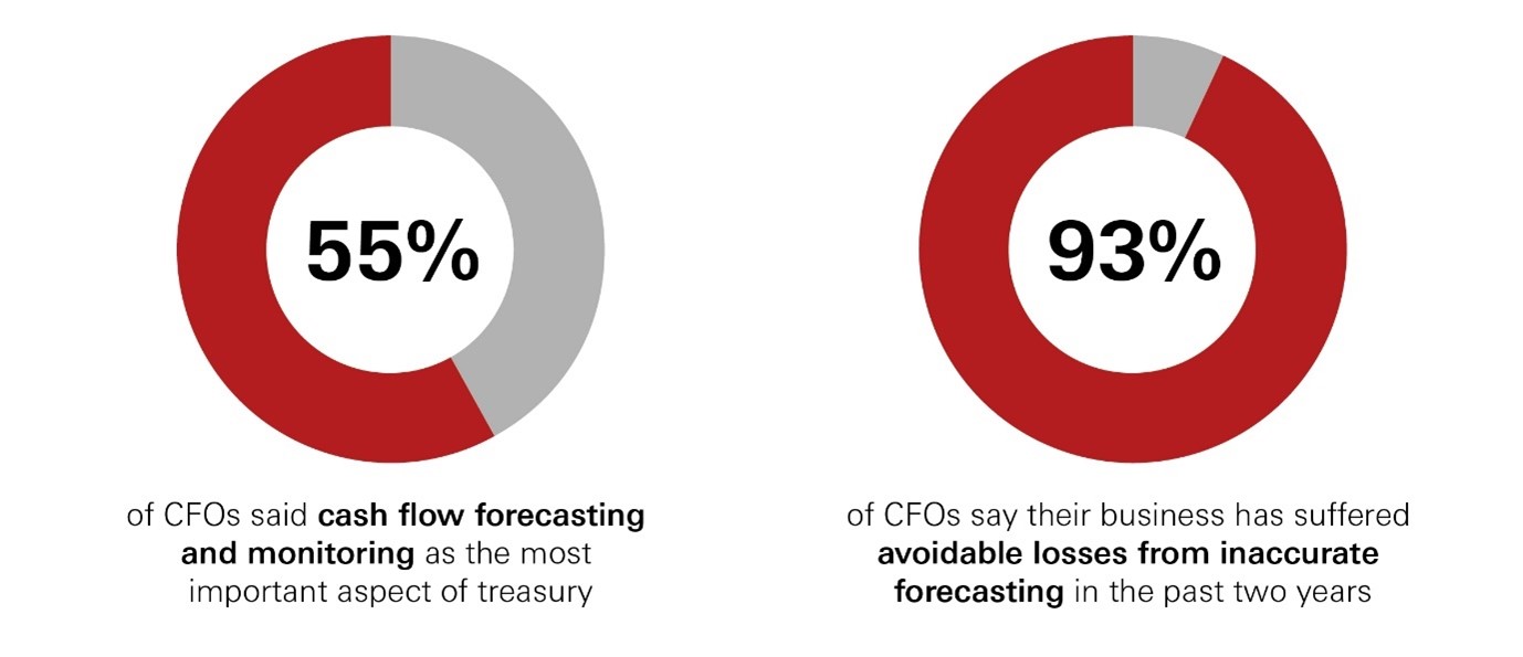 We also observed this in HSBC’s Corporate Risk Management survey² where nearly 55% of CFOs interviewed highlighted cash flow forecasting and monitoring as the most important aspect of their Treasury management and also the area to improve upon.